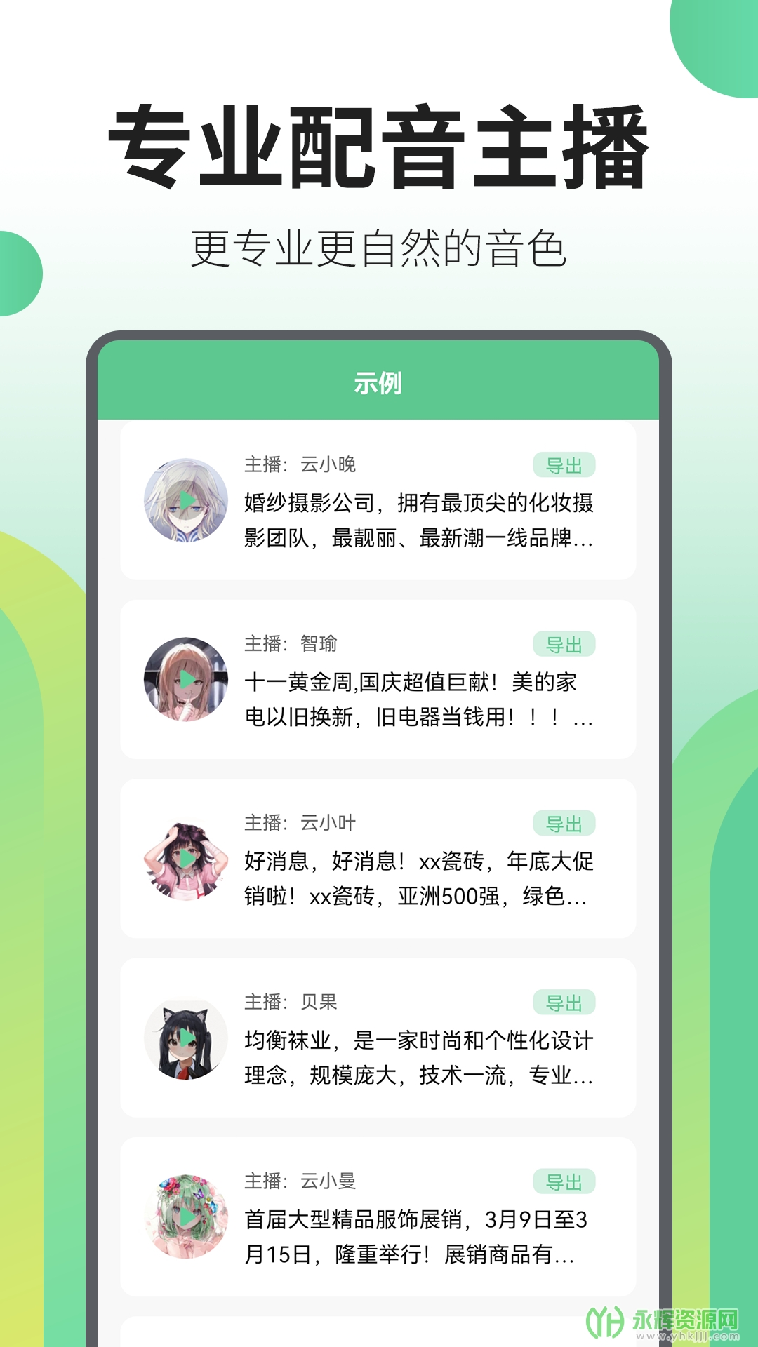 拥有专业的配音主播和多种音色选择,提供高质量的语音转换服务