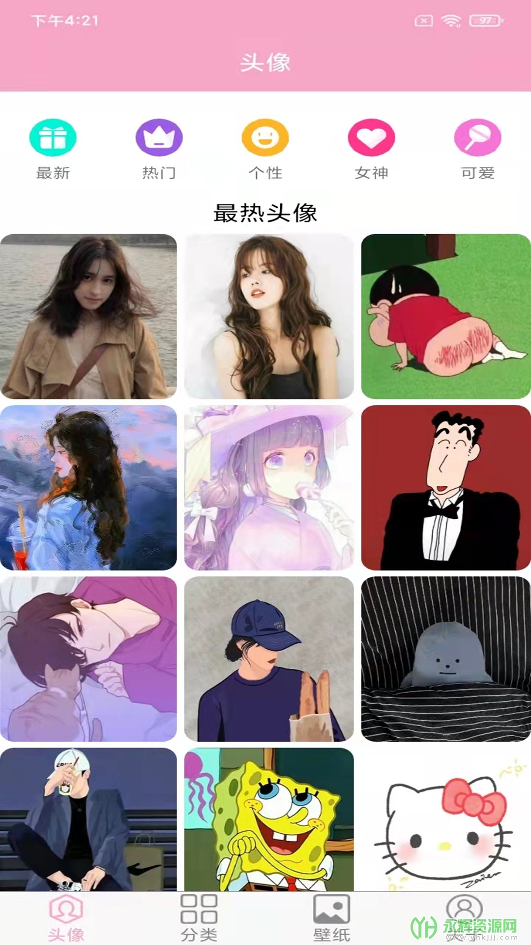 软件拥有丰富多样的头像分类,包括好看的女生和男生头像、可爱的萌宠头像、经典的卡通人物头像、帅气的个性头像等,应有尽有。此外,软件还提供漂亮的壁纸下载设置。