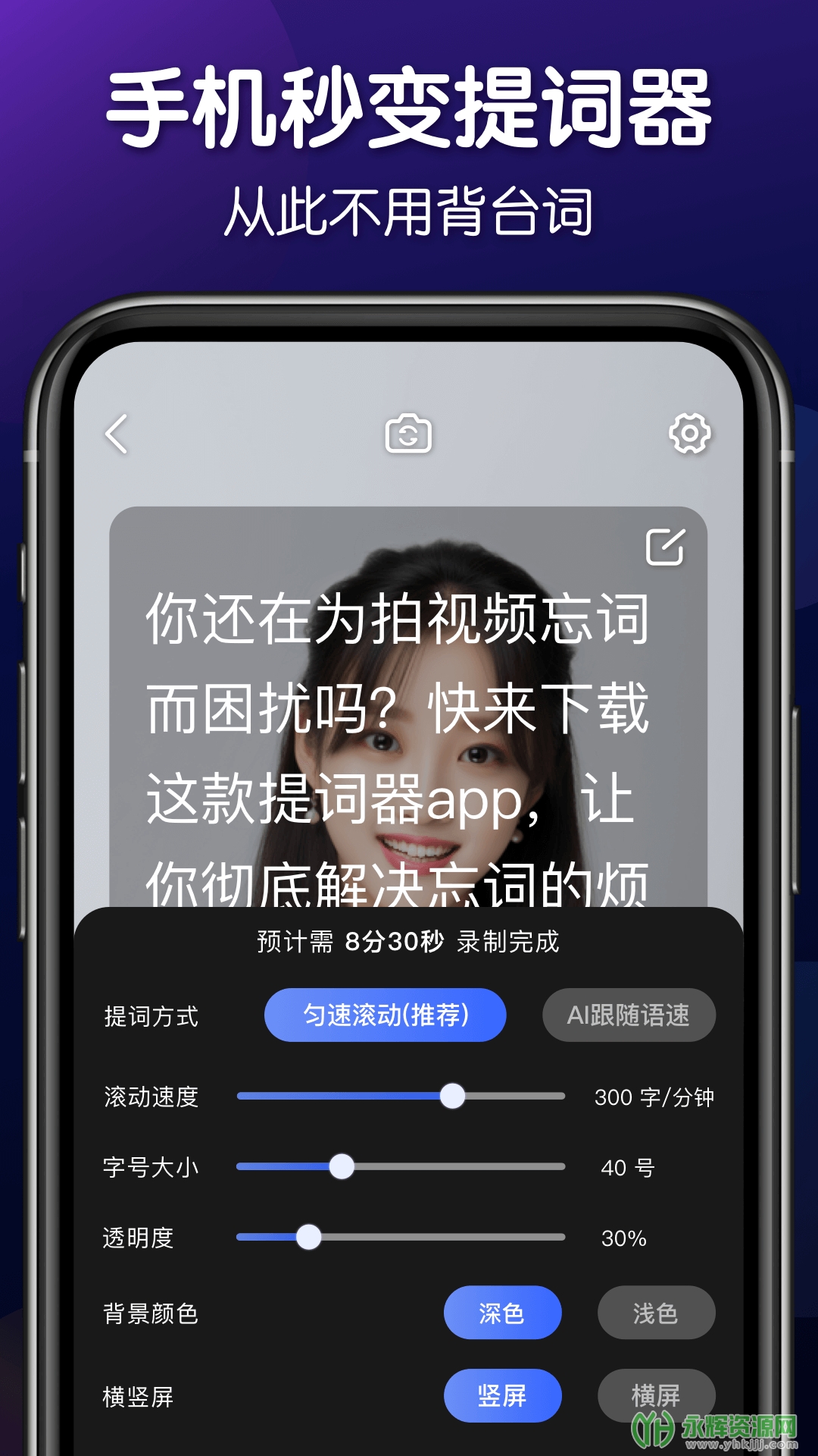 这款软件的特色在于实现自动滚动播放,支持字体、滚动速度等调节。用户只需将文稿粘贴到提词器中,就能实现自动滚动播放,让用户在讲话时能够保持从容淡定。