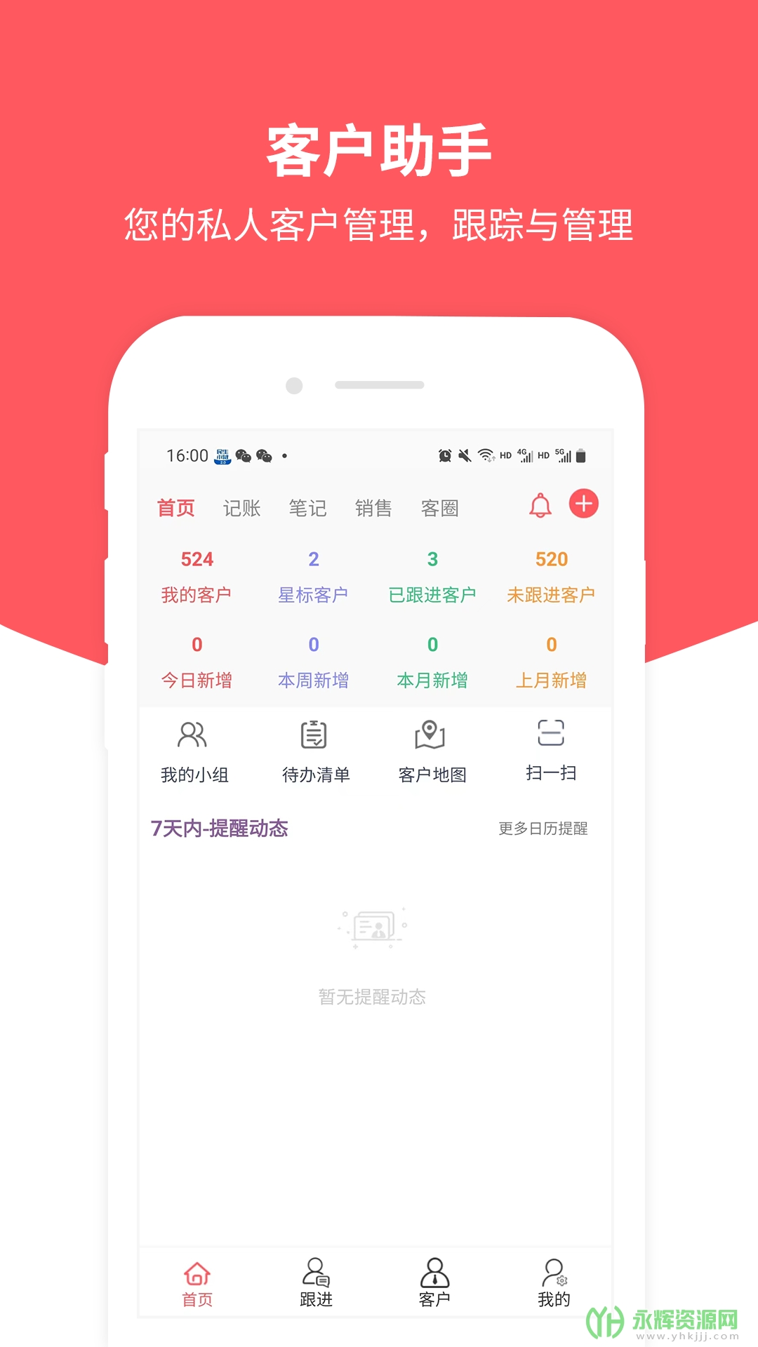 客户助手是一款专为销售管理而设计的移动端掌上销售管理助手应用软件。这款软件能够为用户提供销售详情查看、客户信息记录、提醒消息、个人笔记、业务收支管理、机会分享等多种功能。它以数据安全、方便易用和实时跟进为优势,通过顶级的加密系统保障您的数据安全,帮助您更好地管理、维护客户关系和销售业务。无论您是销售人员还是业务从业者,客户助手都是您提高工作效率和管理客户的理想助手。如果您需要这款软件的话现在就来永辉资源网下载体验吧!