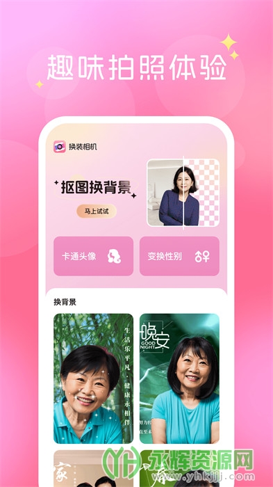 换装相机是一款非常好用且功能齐全的移动端掌上换装自拍摄影工具应用软件。这款软件能够为用户提供丰富特效自拍功能,用户可以随时随地添加各种特效滤镜,为自拍照片增添有趣和艺术感,还支持一键添加滤镜、更换背景,让用户轻松打造精美的自拍照片。如果您对这款软件感兴趣的话,不妨来永辉资源网下载体验一番吧!