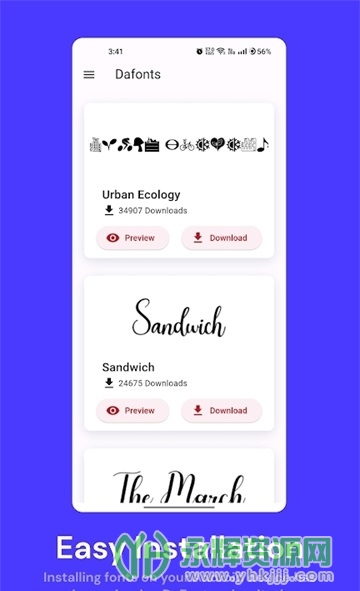 2、用户友好界面:该应用具有简洁直观的用户界面,使用户能够轻松浏览和下载字体。