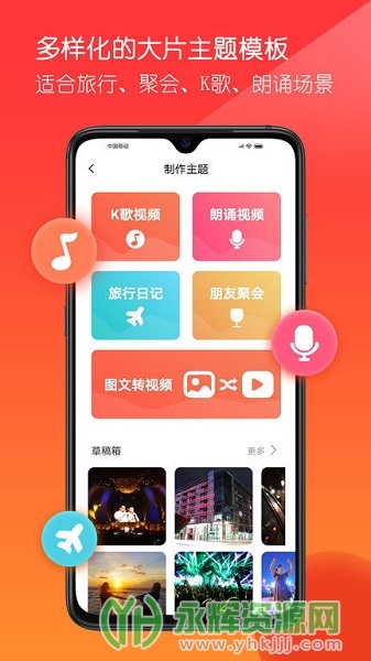 可以帮你讲述旅途中的故事。你可以使用简单易用的故事模板,配上旅游中拍摄的照片、视频,如果漏掉了某些精彩,还可以采用APP提供的海量景点视频素材,让你的游记更加生动精彩。
