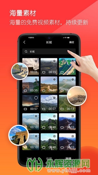 2、丰富的素材库:嵌有大量的音乐、特效、滤镜、贴纸等素材,用户可以根据需要自由选择并添加到视频中,增加创意和趣味性。