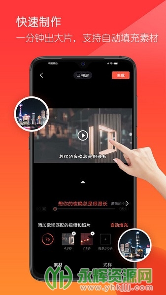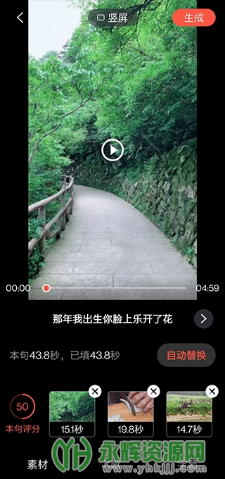 5、需要用户添加素材,软件内为大家提供了很多好看的素材,添加之后选择生成;
