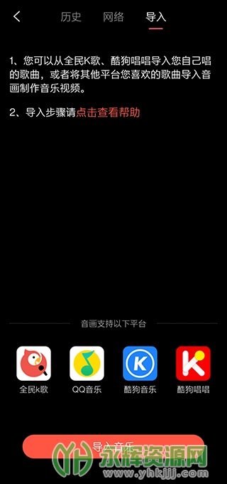 3、还可以通过第三方平台导入音乐,支持qq音乐、酷狗等途径来导入歌曲;