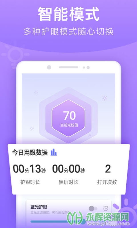 亮度调节轻量版是一款非常便捷且功能齐全的移动端掌上手机屏幕亮度调节器应用软件。这款软件能够为用户提供多种智能模式和滤光护眼设置,帮助用户根据不同环境选择适宜的亮度模式,同时提供用眼提醒功能,有效缓解眼睛疲劳。如果您对这款软件感兴趣的话,不妨来永辉资源网下载体验一番吧!
