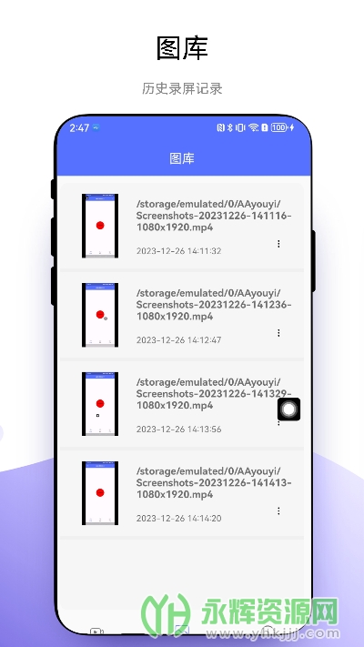 悬浮录屏助手是一款便捷实用的屏幕录制应用程序,致力于帮助用户轻松记录屏幕上的精彩瞬间。其以简洁、便捷为设计理念,特别注重操作体验和实时编辑功能,使用户能在录制过程中享受无压力的操作体验。如果您对这款软件感兴趣的话,不妨来永辉资源网下载体验一番吧!