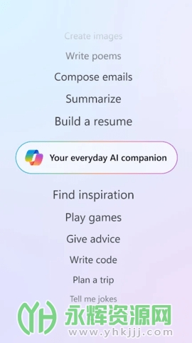 Copilot是一款非常好用且功能强大的移动端掌上在线AI辅助办公助手应用软件,由微软开发开发打造并推出。这款应用软件能够为用户提供精致的AI小工具,旨在帮助用户获得优秀的AI助手体验,并根据用户兴趣和爱好推荐相关内容,提供个性化的服务。如果您对这款软件感兴趣的话,不妨来永辉资源网下载体验一番吧!