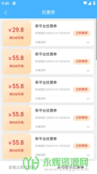 3、优惠券处查看您所拥有的优惠券,并可以立即使用。