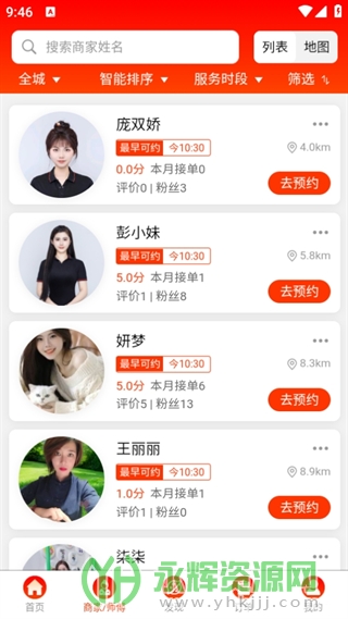 4、进入技师首页,选择喜欢的商家点入主页查看详情,如满意即可选择要预约的项目进行下单