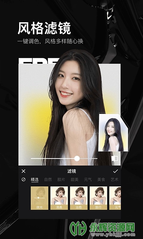 美颜照片编辑是一款专注于美图的免费P图软件,包含了多样化的编辑工具,从基本的图片处理到高级的美化特效,提供了一站式的照片美化解决方案。用户可以便捷地实现照片的专业级修饰,并用创意滤镜和贴纸展示个人风采。如果您对这款软件感兴趣的话,不妨来永辉资源网下载体验一番吧!