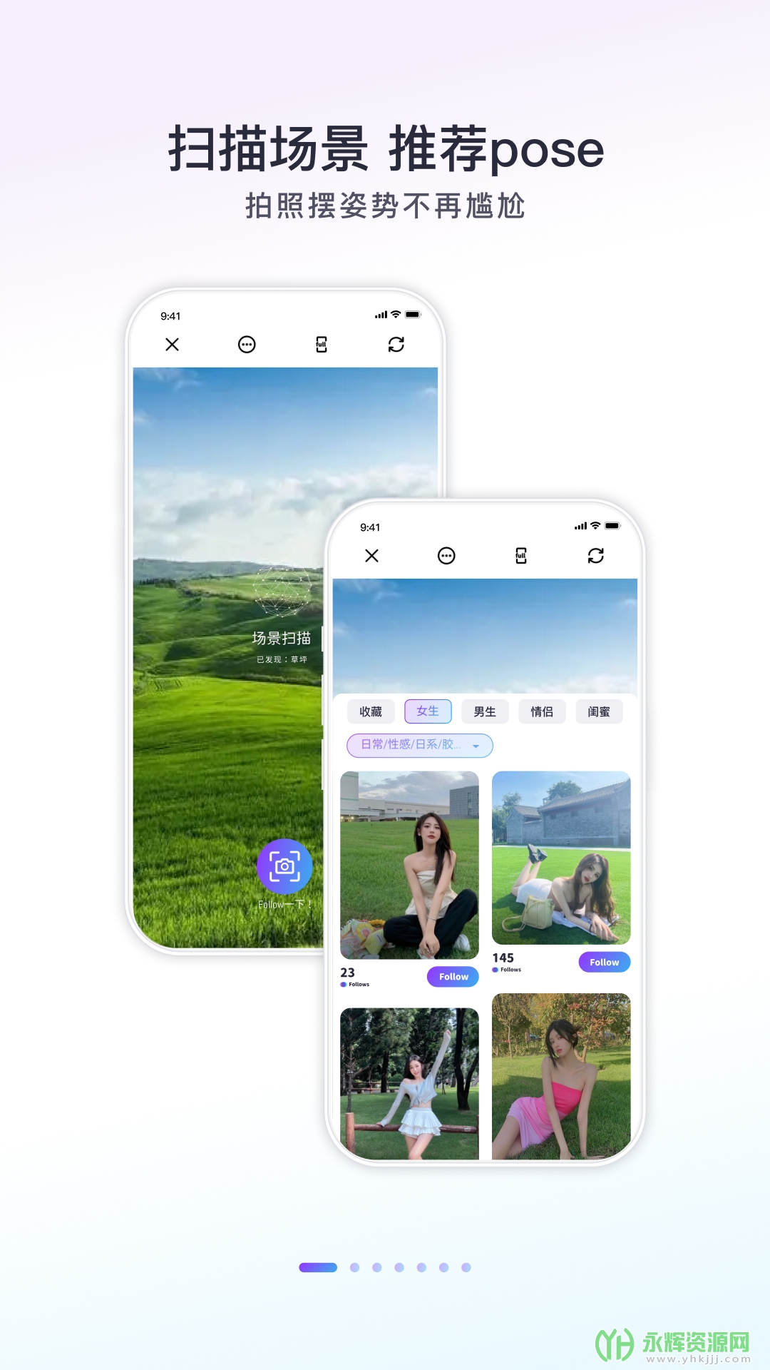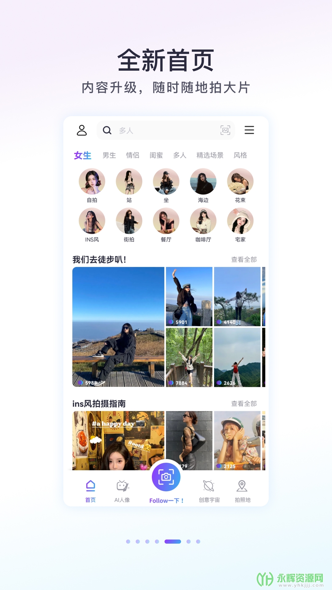 Follow相机是一款专为热爱摄影并展现个人创意的用户设计的手机摄影应用软件。这款软件能够为用户提供多种辅助功能,帮助用户整理、编辑和调整照片,以及发挥创意,打造与众不同的作品,包括美食、旅行、自然风景和人像等,满足不同场景的拍摄需求。如果您对这款软件感兴趣的话,不妨来永辉资源网下载体验一番吧!