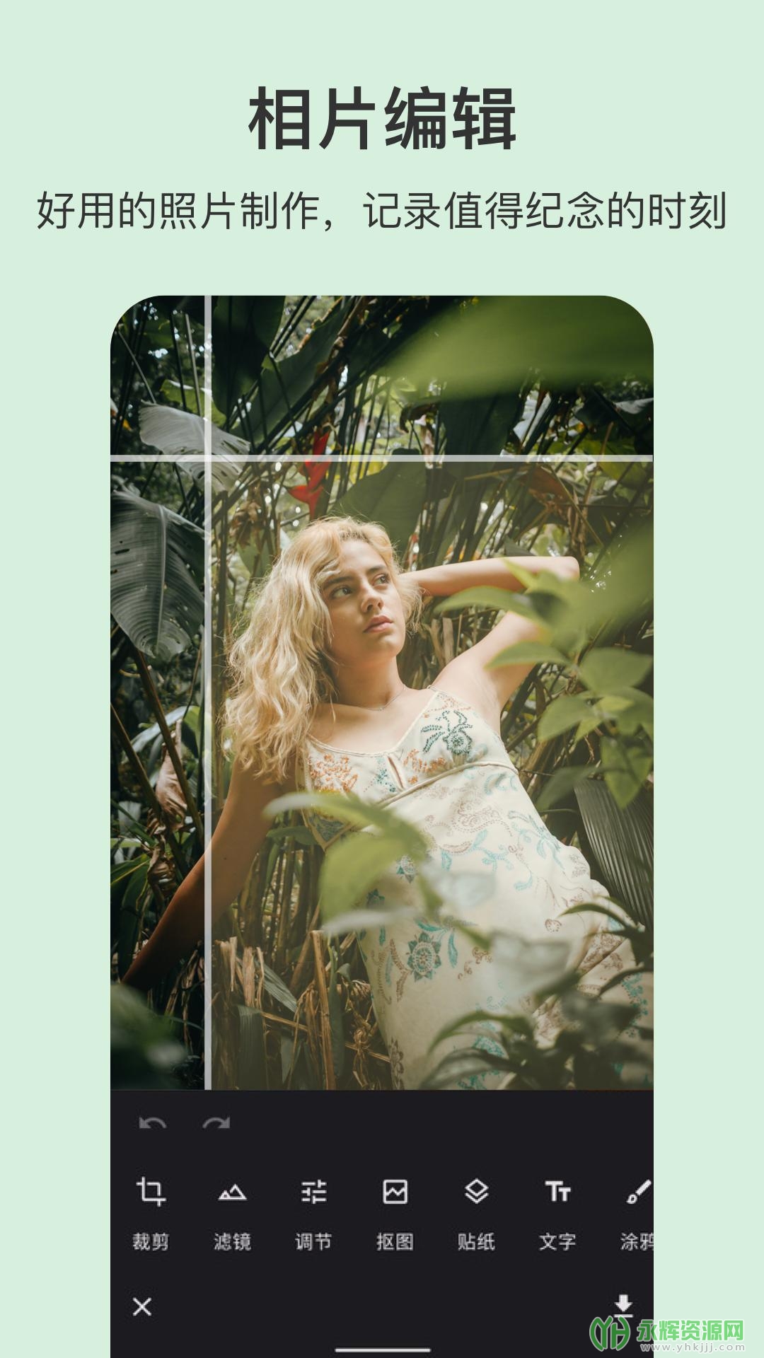 基础编辑:支持常规的图片裁剪、旋转、调整色彩和亮度等操作。