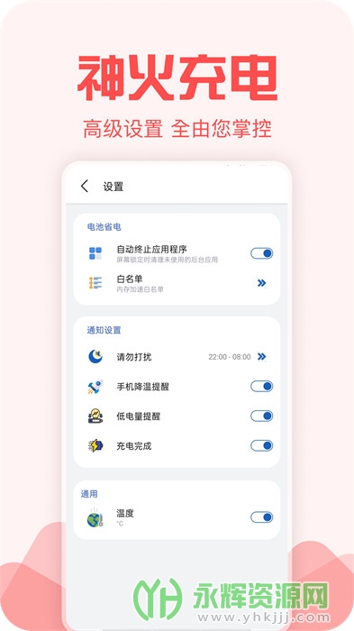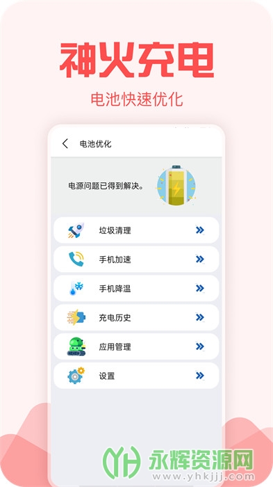 神火充电是一款非常好用且功能齐全的移动端掌上充电工具类应用软件,专门为用户提供手机充电服务。这款应用软件能够为用户提供丰富的充电功能和服务,包括手机降温、充电历史查询和应用管理等多方位的服务。如果您对这款软件感兴趣的话,不妨来永辉资源网下载体验一番吧!