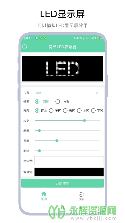 简单LED弹幕器是一款非常好用且功能强大的移动端掌上弹幕播放类工具应用软件,专为用户提供弹幕设置服务,这款应用软件能够为用户提供丰富的弹幕设置功能,搭配自定义的弹幕颜色和字体等设置,使用户的手持弹幕更加个性化与众不同。如果您对这款软件感兴趣的话,不妨来永辉资源网下载体验一番吧!