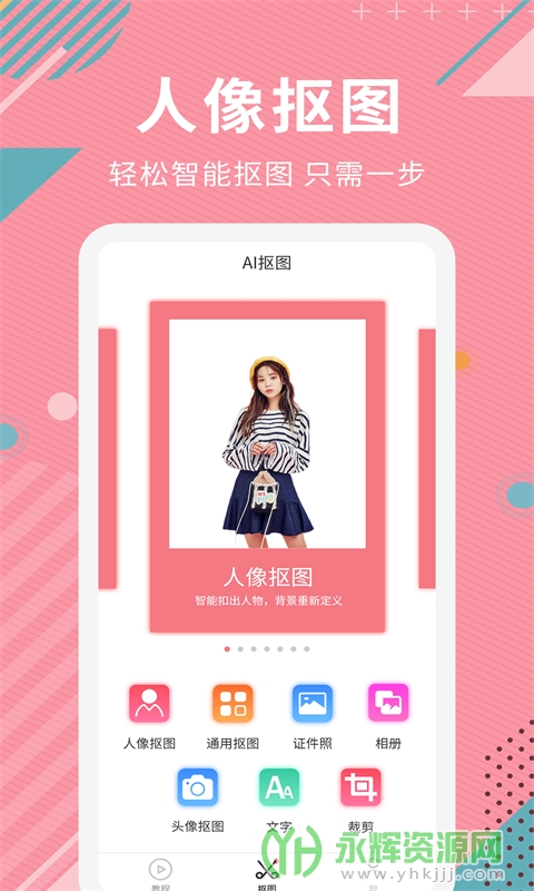 AI智能抠图是一款非常专业且功能强大的移动端掌上图片处理工具应用软件。这款软件借助先进的AI智能算法,用户能够轻松实现快速抠图处理,操作简便快捷,功能丰富强大。该软件内置上百套优质背景图库及贴图,用户可自由更换背景或从相册中自定义添加背景。如果您对这款软件感兴趣的话,不妨来永辉资源网下载体验一番吧!