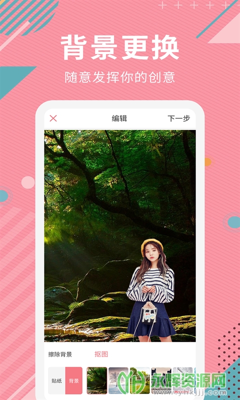 这款软件内置了上百套优质背景图库和贴图,用户可以轻松更换背景或从相册中自定义添加。这使得用户能够以更加创意和个性化的方式编辑图片。