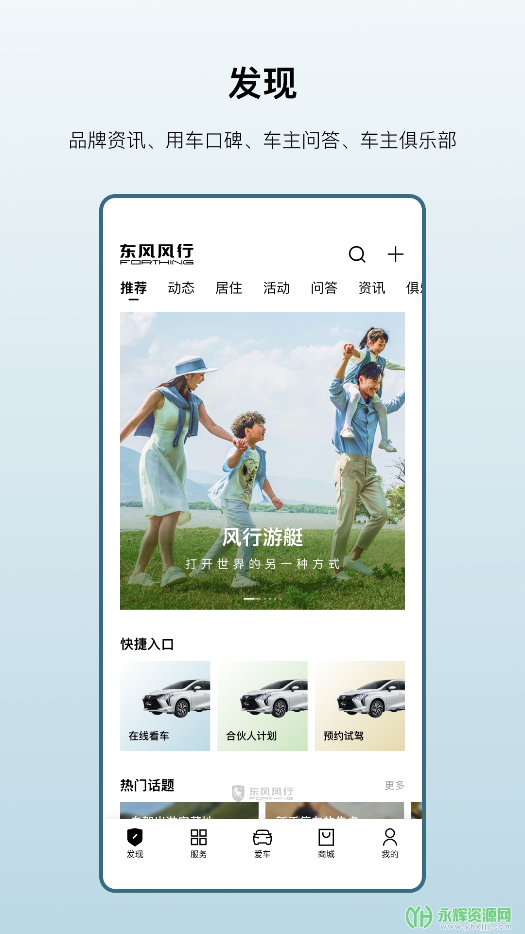 东风风行是一款非常专业且功能齐全的移动端掌上在线智慧车联服务平台应用软件,由东风柳州汽车有限公司打造开发。这款应用软件旨在为尊贵的东风风行车主提供智能车控、远程诊断、虚拟蓝牙钥匙、轨迹查询、爱车定位等丰富的车生活功能,实现用车无忧的贴心服务。如果您对这款软件感兴趣的话,不妨来永辉资源网下载体验一番吧!