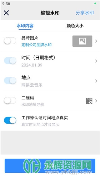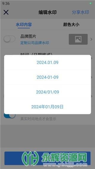 3、丰富的水印模板:包含丰富的水印模板,可以选择添加时间地点、天气时间、电子时钟、时间地址、上班打卡、经纬度等水印,智能获取当前的时间、天气、位置信息并实时添加至照片中。