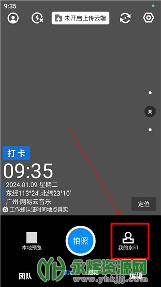 1、在进入APP后,先拍摄或者导入一张图片,之后点击【我的水印】。