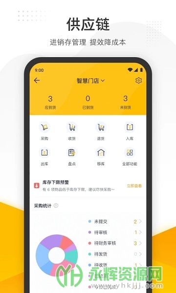 1、供应链管理:内置完善的供应链管理功能,可以一键进行进销存管理。