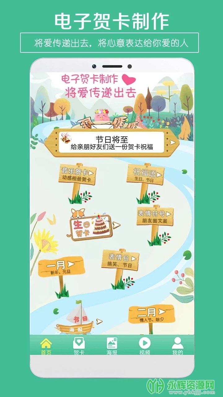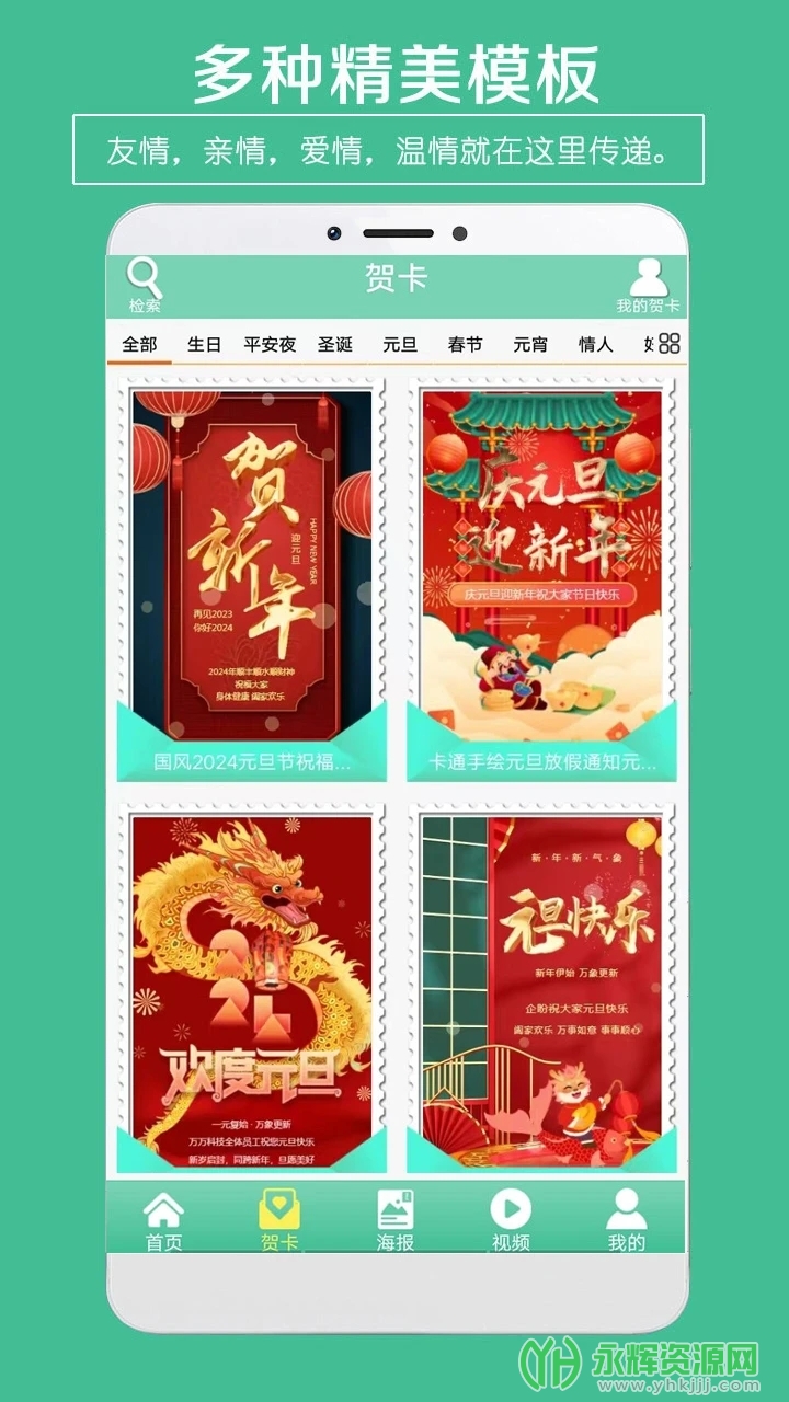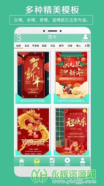 贺卡制作是一款功能丰富、操作简便的手机贺卡设计应用,提供多元化的贺卡模板和个性化编辑工具,使用户能够为各类节日和特殊场合制作专属的贺卡,以独特的方式传递情感和祝福。如果您对这款软件感兴趣的话,不妨来永辉资源网下载体验一番吧!
