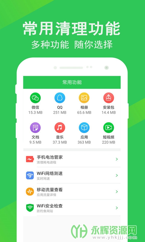 快清理大师是一款集清理、电池健康管理与安全功能于一体的手机工具软件,专门设计以优化手机性能,确保设备以最佳状态运行。它通过定时清理和电池健康监测,帮助用户增强手机的使用体验和续航能力。如果您对这款软件感兴趣的话,不妨来永辉资源网下载体验一番吧!