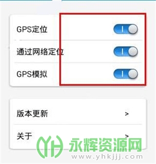 4、在设置界面,开启gps定位,通过网络定位,gps模拟按钮,就可以的。
