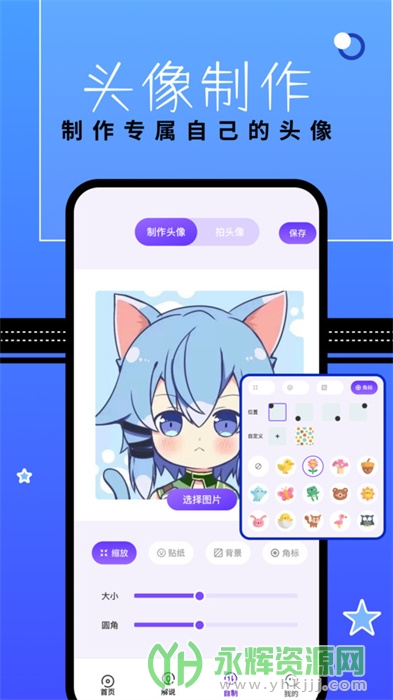 提供丰富多样的壁纸和主题,包括头像素材和装饰配件。