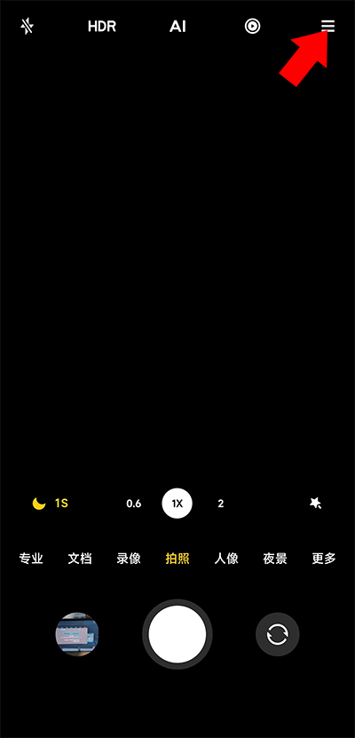 3、之后我们打开手机自带的相机,点击右上角菜单按钮