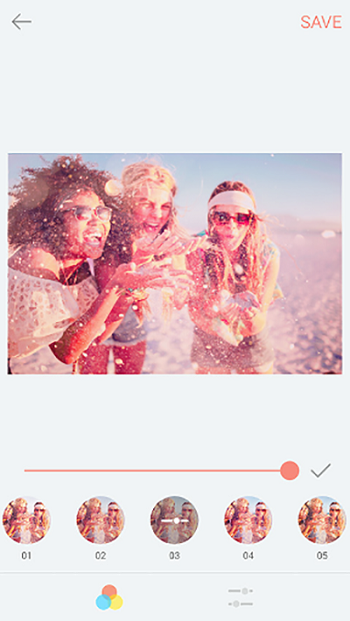 4、滤镜调节拉杆可以帮助你调节照片美化程度。