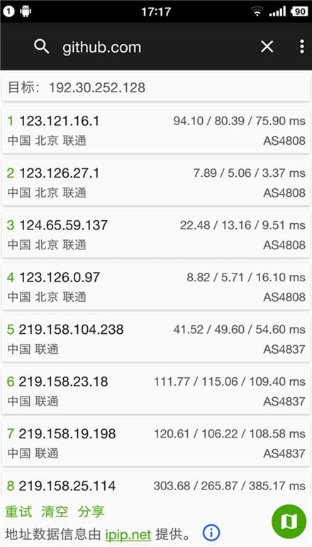 BestTrace是一款可在安卓智能手机上进行IP路由追踪的软件,提供图形化界面操作和可视化效果展示。由北京天特信科技有限公司基于各电信运营商和网络服务的BGP/ASN数据分析处理而来的IP数据库开发而成,能提供更准确的IP地理位置信息,能够精确到国内每个小区的公网IP地理位置。