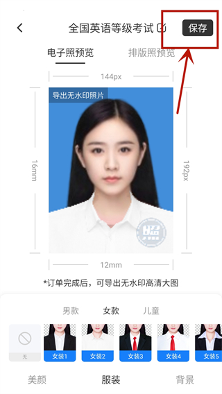 支持自拍模式,拍到你满意为止。快速添加男女正装衣服,一键美颜,即可告别丑丑的证件照。还可快速换底色,一键操作,方便简单。