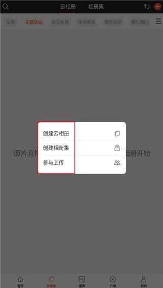4、用户可以选择创建云相册,创建相册集或者参与上传。