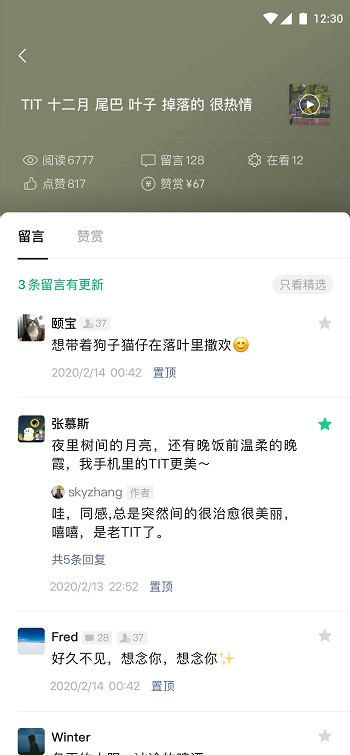 2、随时互动:在App上可以及时收到来自关注者的留言和赞赏并及时回复,以及置顶留言或使用星标功能精选优质留言。