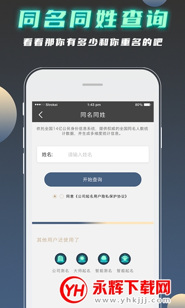 公司起名测名免费取名功能强大的应用工具,能够轻松帮助用户线上起名,还可以自动生成公司名称等,依据生辰八字来取名,精选高兮好名字,感兴趣的朋友们快来下载体验一番吧!