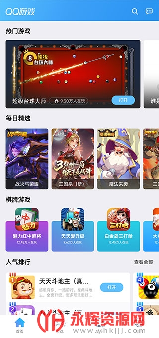 3、进入平台首页,为你实时推荐热门游戏、每日精选、人气排行游戏;