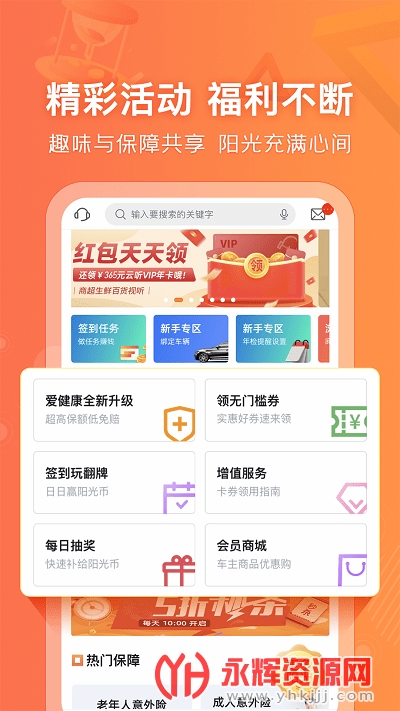 阳光车生活app车险办理是为广大车主朋友们提供的保险服务软件,使用这款软件可以快速查询自己的保险情况,还能够一键为为爱车购买保险,有需要的朋友们不妨来永辉资源网下载哦!