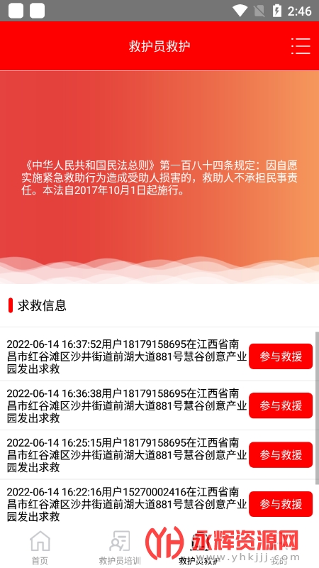 2、求助信息实时陈列,救护员线上即可迅速点击参与救援;