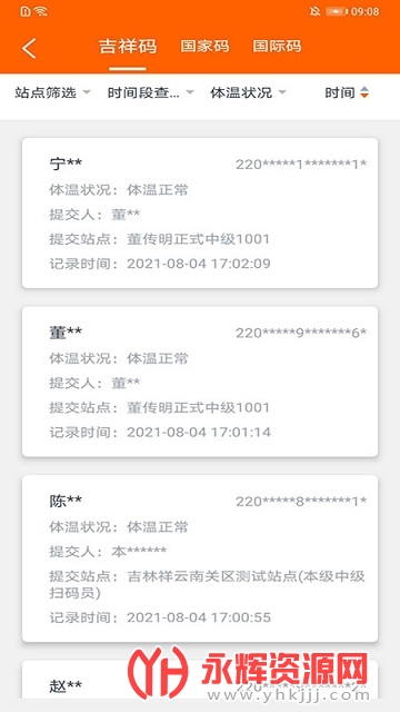 (3)可通过站点筛选、时间段查询、体温状况筛选排查记录内容。