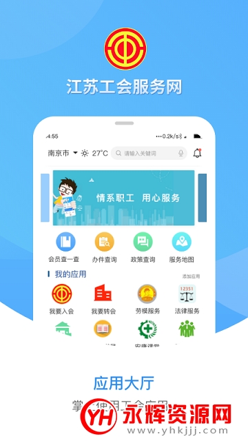 江苏工会服务网是一款非常好用的手机线上工会生活服务软件,软件凭借了强大的互联网大数据技术为用户构建了一个功能全面的线上生活服务平台,专门为江苏本地的工会成员用户带来了各种便捷实用的生活服务,有需要的朋友就快来永辉下载体验吧!