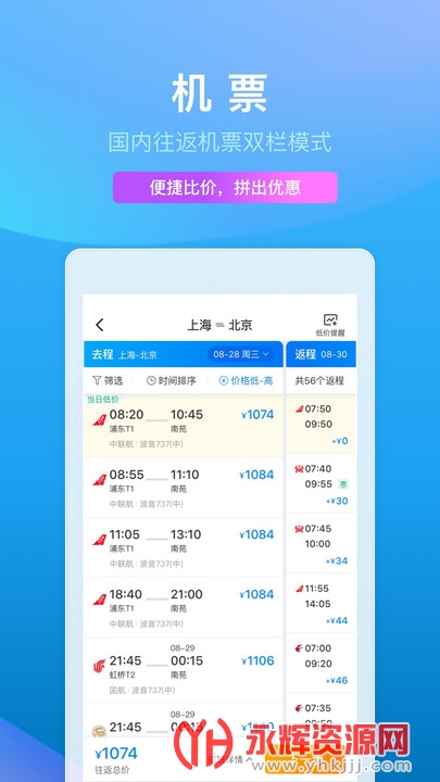 携程旅行app是一款为用户提供出行服务的应用,支持机票,火车票,高铁票,酒店服务的预订,让您享受到出行的一站式服务,在携程旅行app购票还能享受到大额的优惠,方便又快捷,是您出行购票的最佳选择,有需要的朋友现在就来下载使用吧!