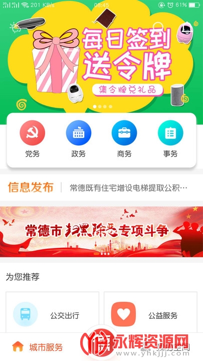 目前"我的常德"可提供便民查询、交通出行、在线预约、互动交流、教育医疗、缴费充值等便民服务.