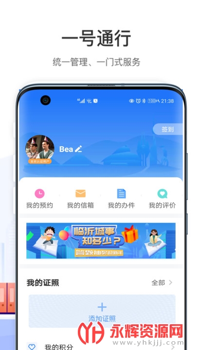 “我的”页面全新改版,新增签到和证照功能;