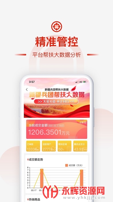 2、APP端还设置了精准溯源、帮扶大数据、电商学院、企业内购、党建专区等板块。