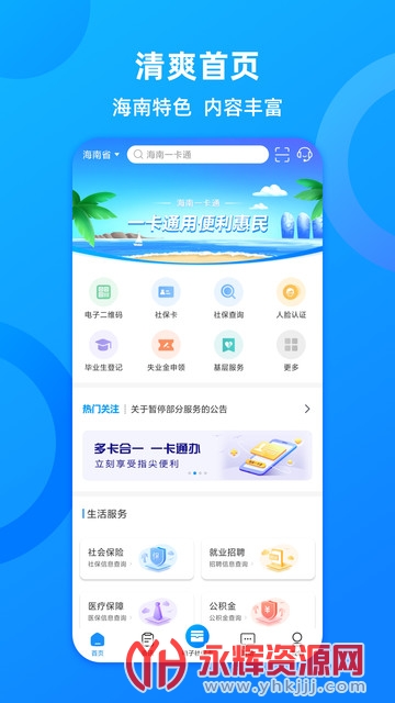 海南一卡通app官方是专为广大海南用户个性化量身定制的社保生活服务类软件,更加便捷式的服务让你可以轻松进行诸多业务的在线办理,节省诸多时间的浪费,一站式服务用起来非常的方便,诸多实用型功能的设置都在这里为你提供,需要就赶紧来下载使用吧!