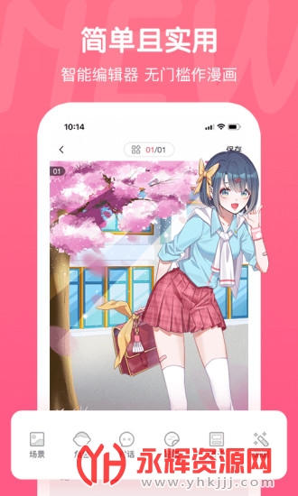 可以阅读有趣的漫画,还可以玩漫画,自由创作定制动漫角色、配搭服饰、创建场景和对话框来制作生成好玩的条漫。