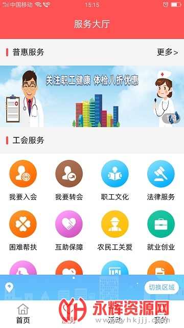 地区的企业招聘信息随时能看,支持全省各地区的职工享受工会的福利;