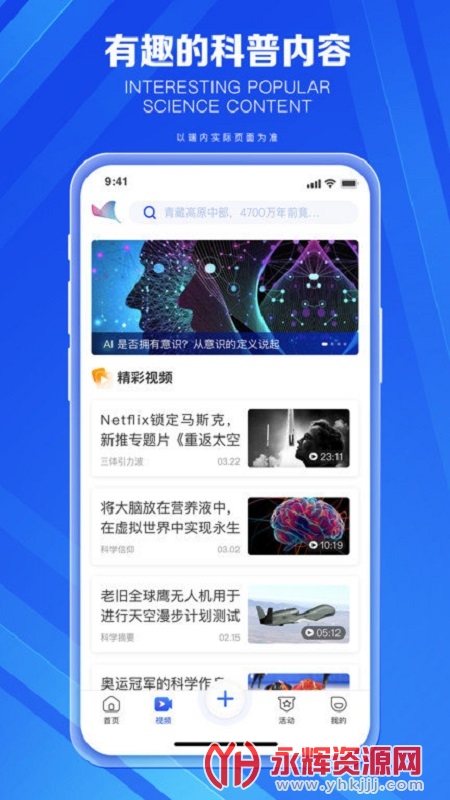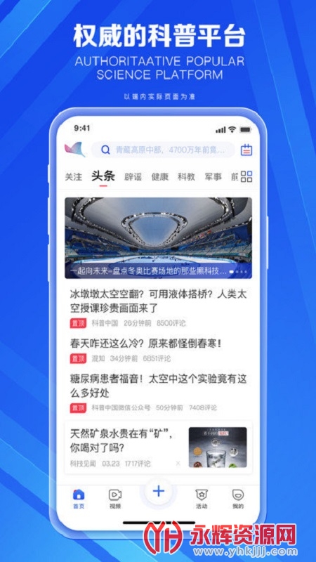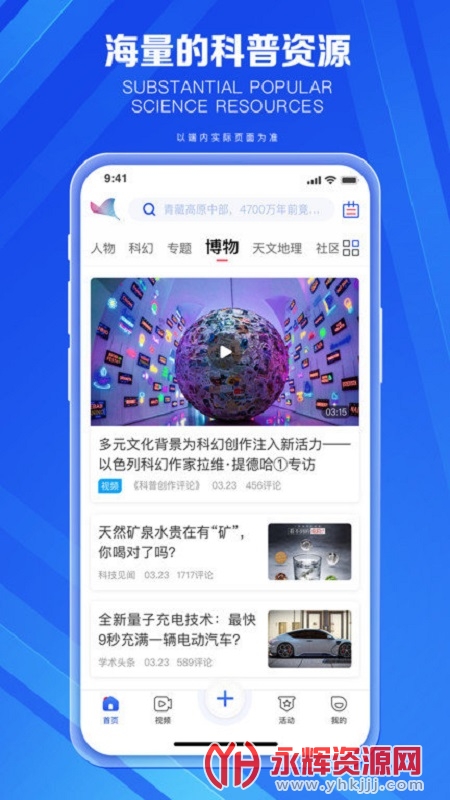 科普中国官方app手机版是一款十分权威的科普知识学习平台,在这里你可以查看许多中国科学相关最新的资讯内容,带你走进中国科学领域的大门,对这款软件感兴趣的朋友们欢迎来永辉资源网下载哦!